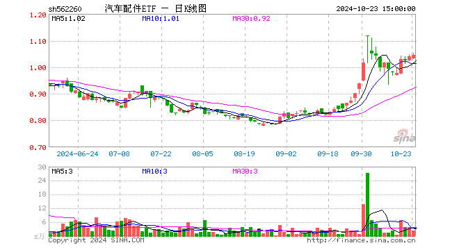 规模方面,截止10月22日,汽车配件ETF(562260)最新份额为3433.15万份,最新规模为3574.25万元。