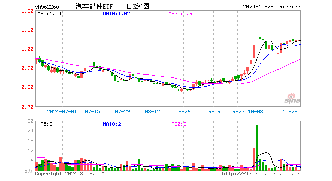 10月28日,汽车配件ETF(562260)开盘跌0.57%,报1.040元。汽车配件ETF(562260)重仓股方面,福耀玻璃开盘涨0.00%,汇川技术涨0.86%,三花智控跌0.91%,赛轮轮胎跌0.43%,拓普集团跌1.57%,德赛西威跌1.46%,伯特利跌0.49%,华域汽车跌0.12%,银轮股份跌0.82%,双环传动跌0.10%。