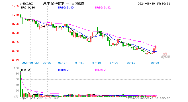 规模方面,截止8月29日,汽车配件ETF(562260)最新份额为8833.15万份,最新规模为7196.37万元。