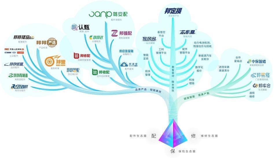 邦邦汽服成立至今始终坚持“平台”定位,以保险理赔事故件供应链为核心,致力将行业优秀的制造能力、流通能力、仓储物流能力、数据科技能力、维修服务能力、保险服务能力进行数字化连接,专注将核心资源和专业数字化技术导入生态,成为“保险生态圈”、“维修生态圈”、“配件生态圈”的高价值连接器和赋能器。