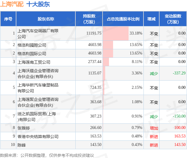 根据上海汽配2025年三季报公布的十大股东详情如下: